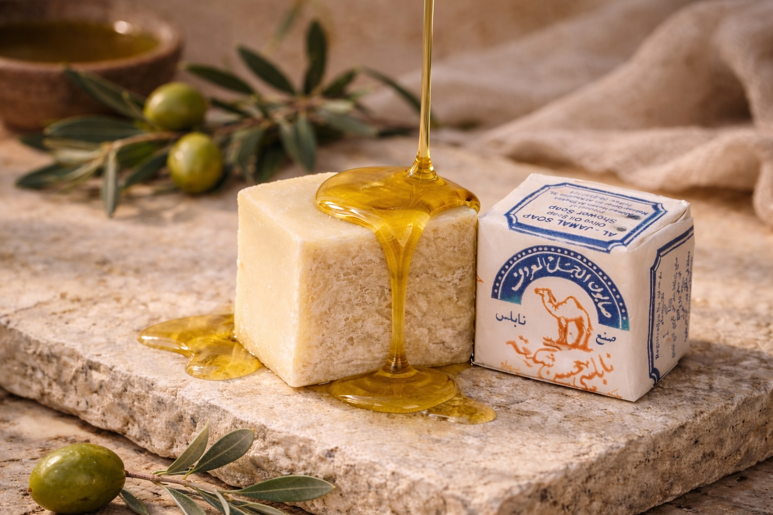 În săpunurile Nabulsi, uleiul de măsline este ingredientul principal. Asta înseamnă o spumă mai fină și o curățare blândă, o senzație diferită de săpunurile obişnuite, mai apropiată de ritualul natural de îngrijire.